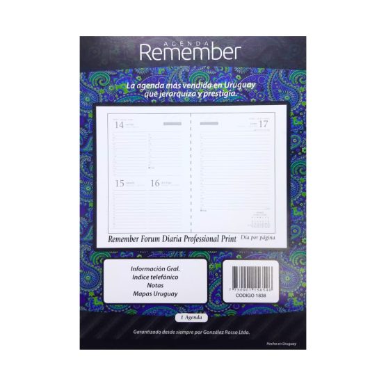 Agenda remember profesional print 2026 1838 14×19.5cm