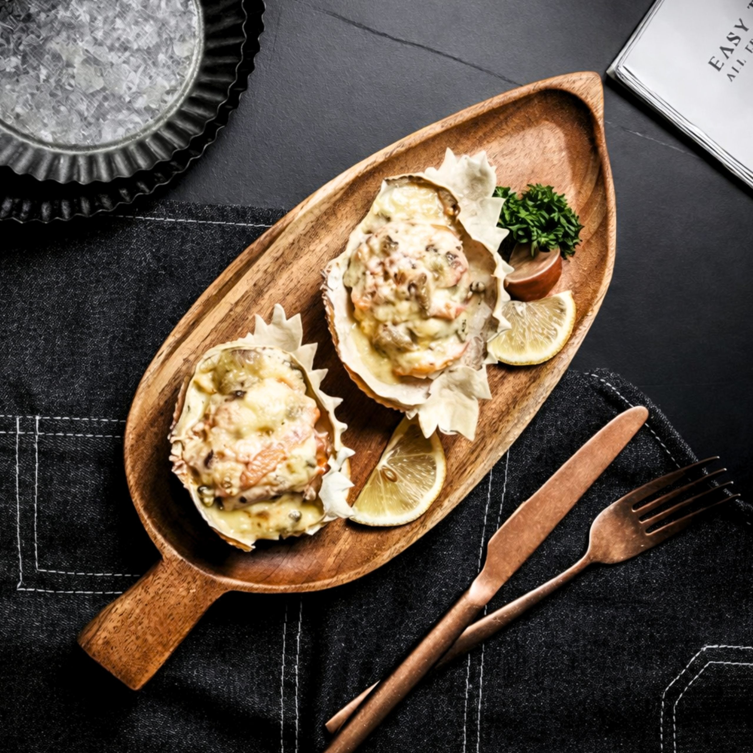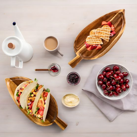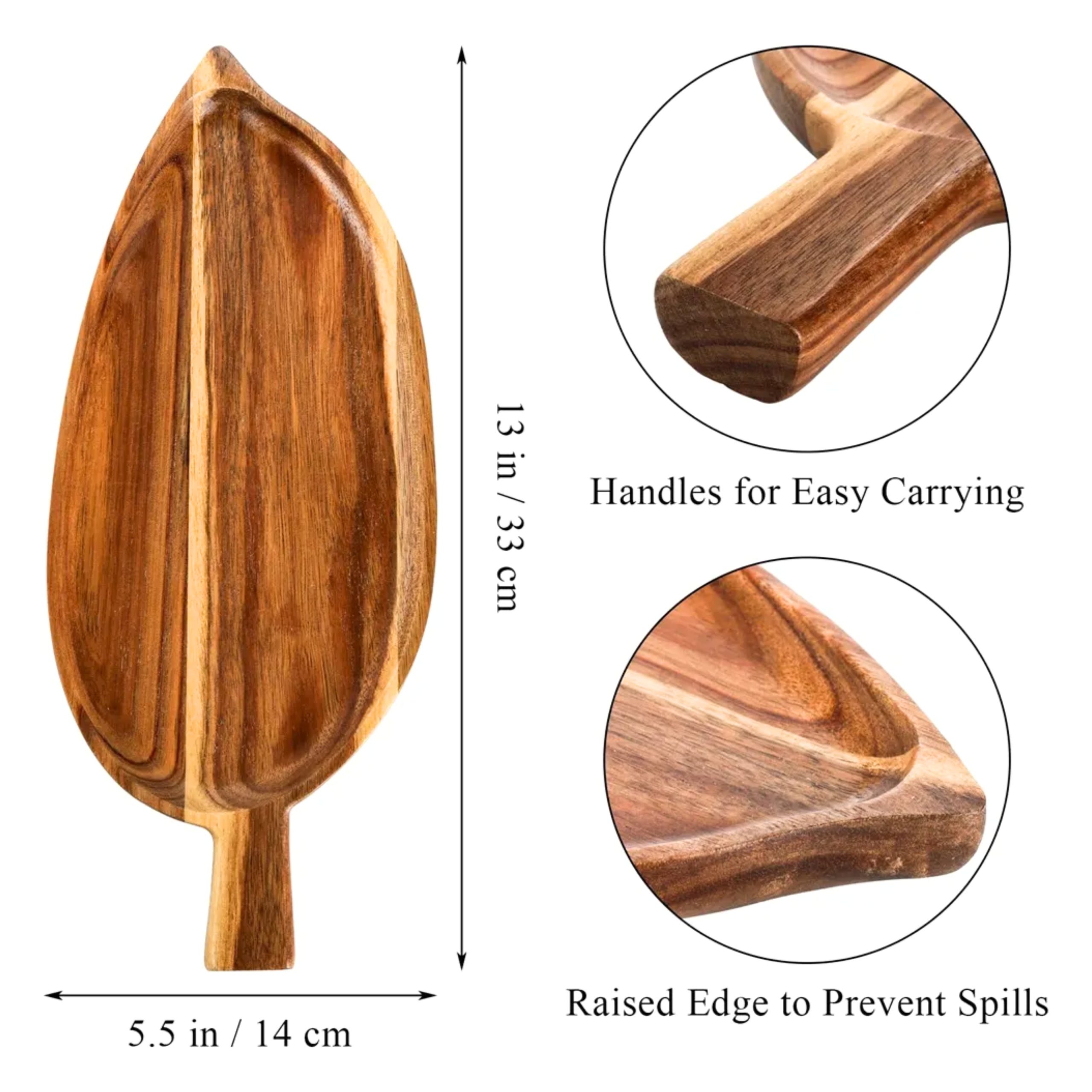 Bandeja de bambu diseño hoja 33×14 cm