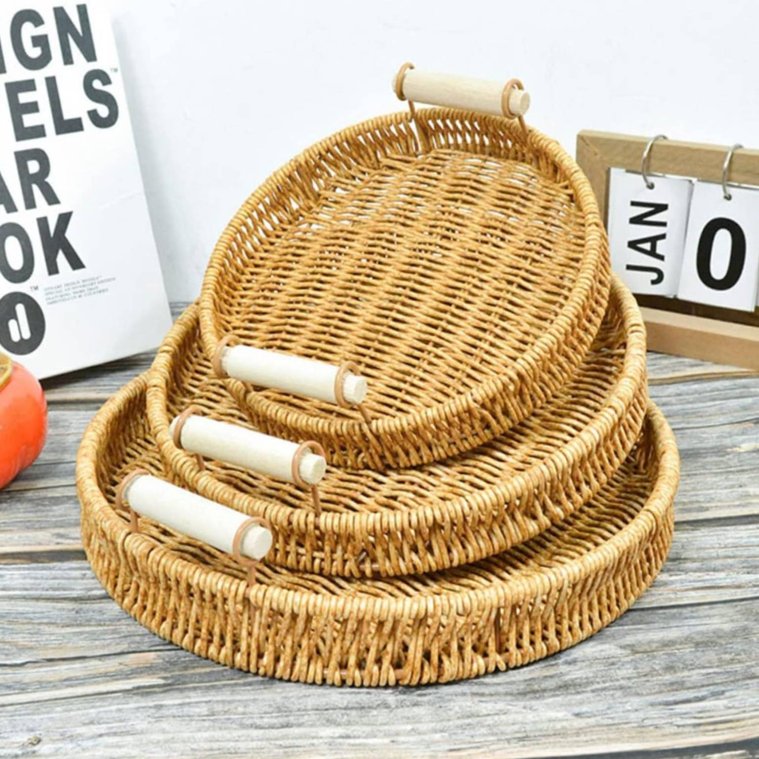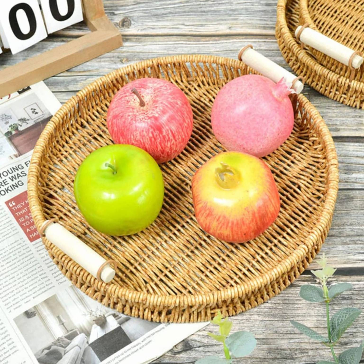 Bandeja ratan con asas madera mediana 24x3 cm cantidad
