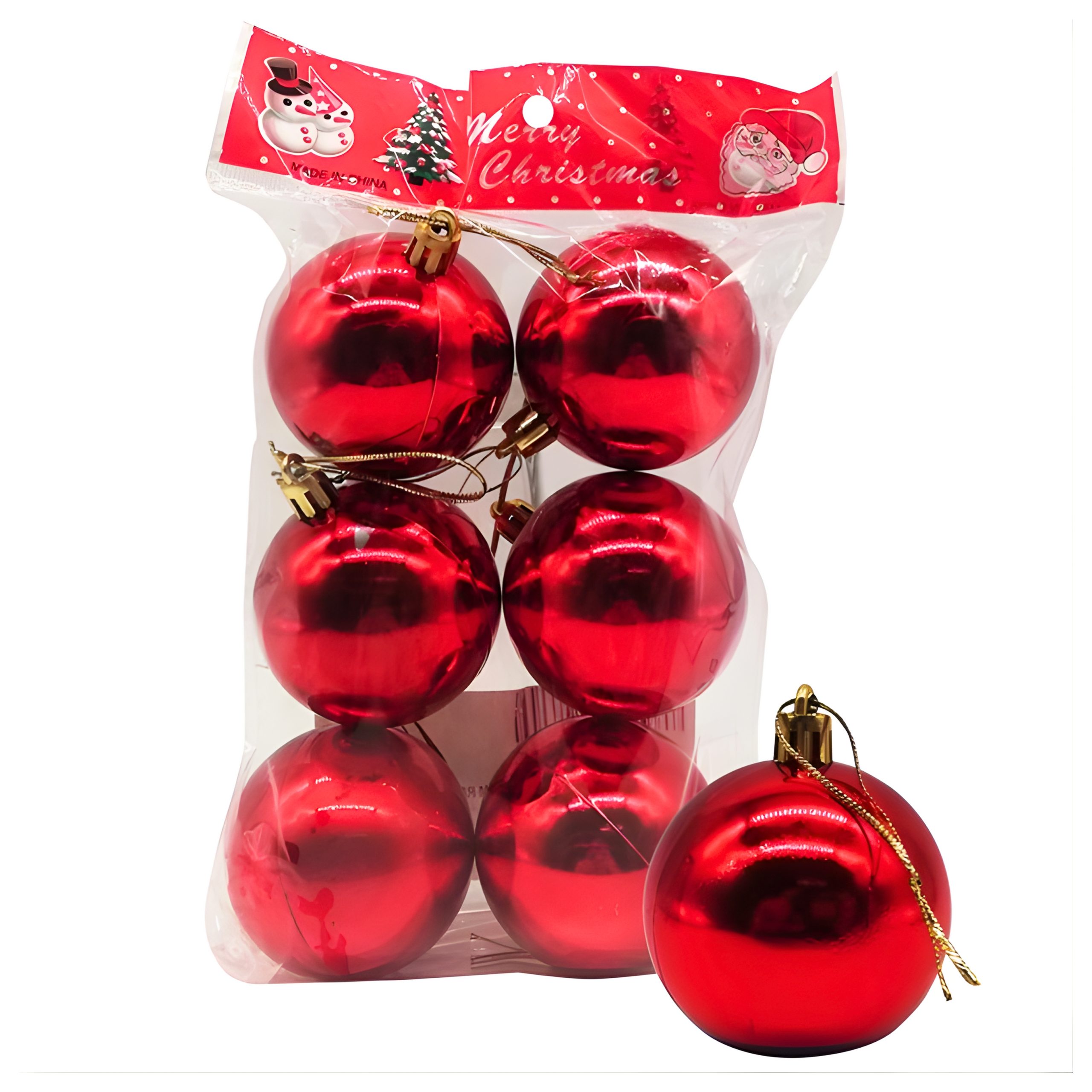 Bolas navideñas x6 5cm brillantes rojo, dorado y plata quantity