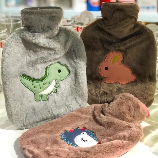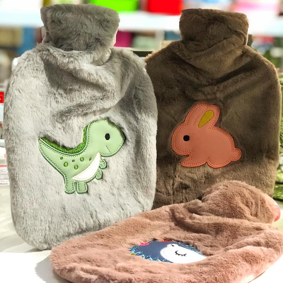 Bolsa en goma reforzada con tapón + funda peludita con diseño.
