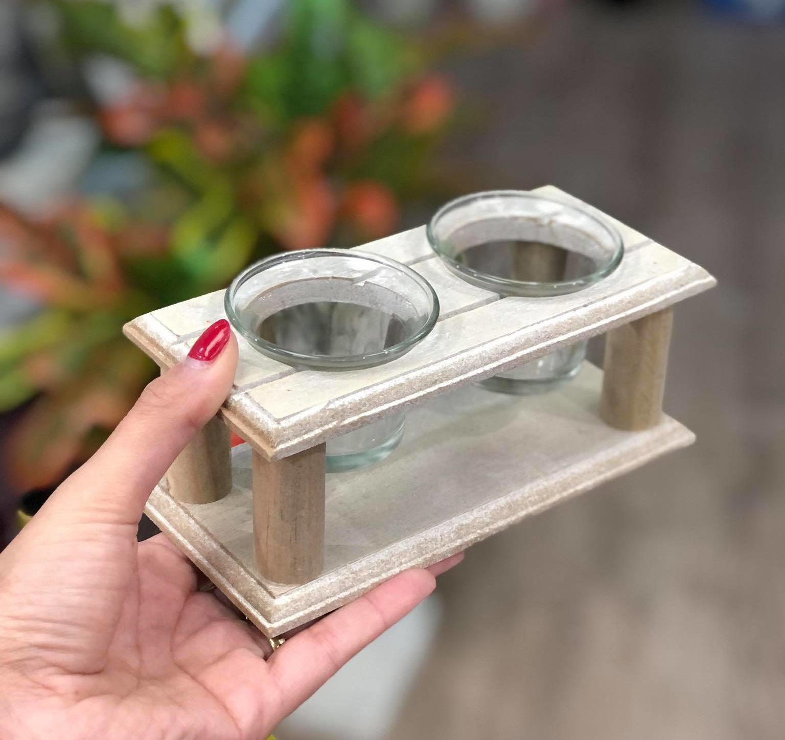 Candelabro vidrio x2 base madera