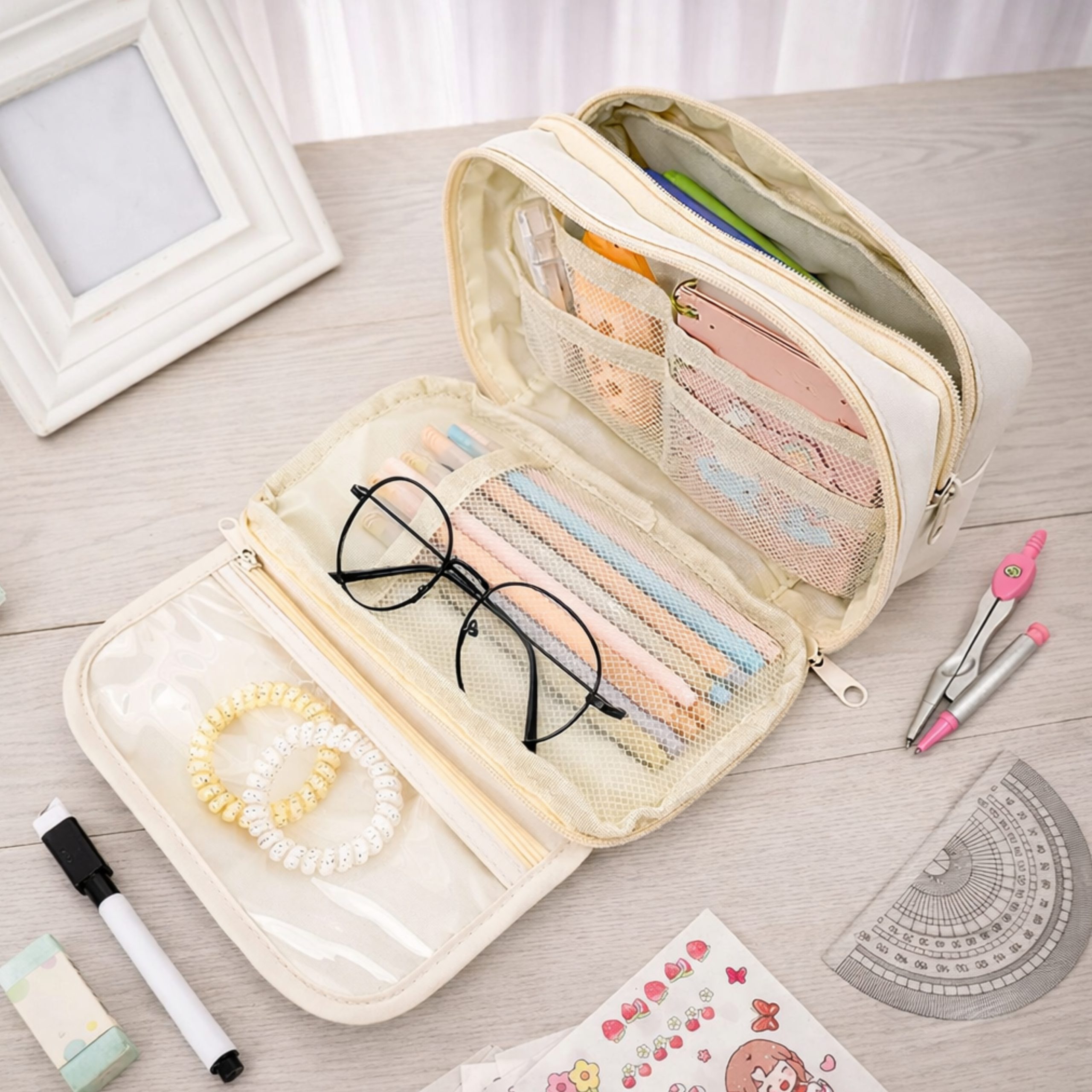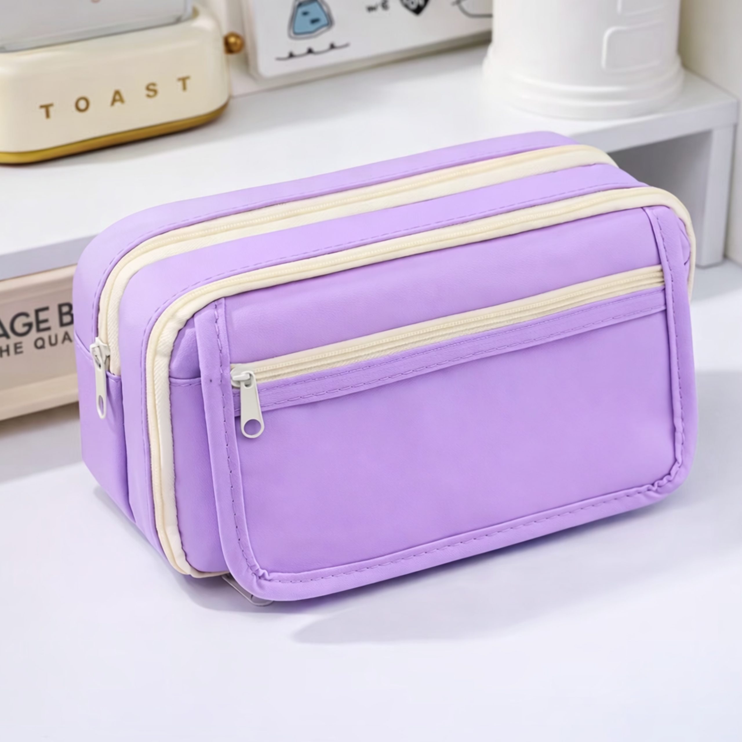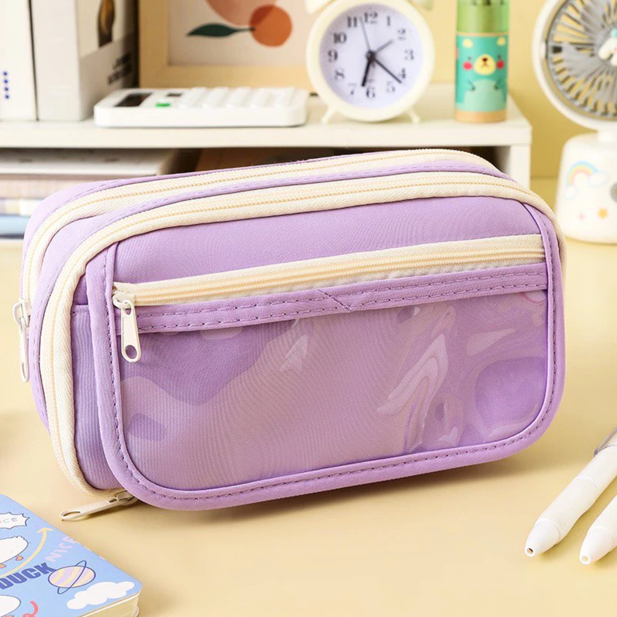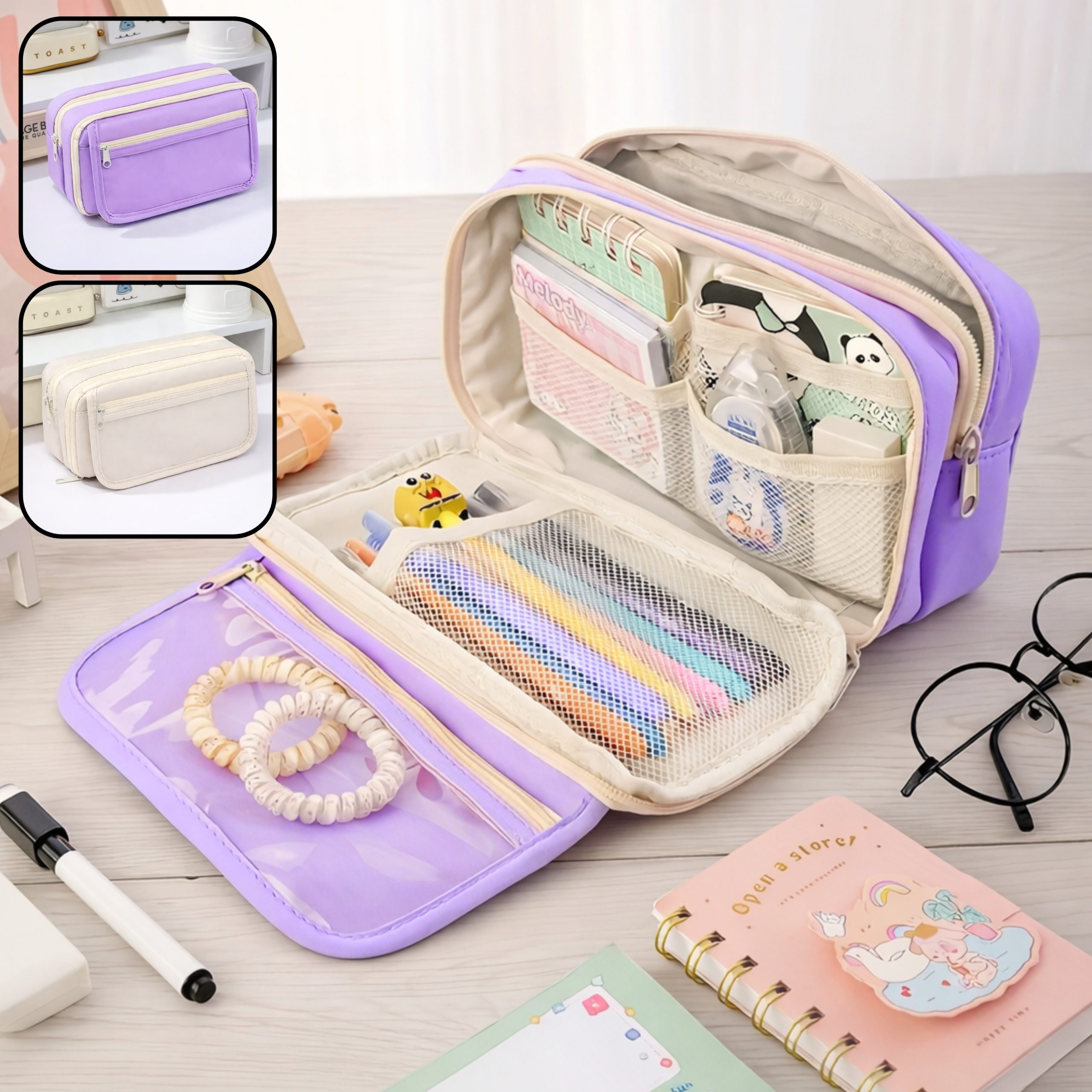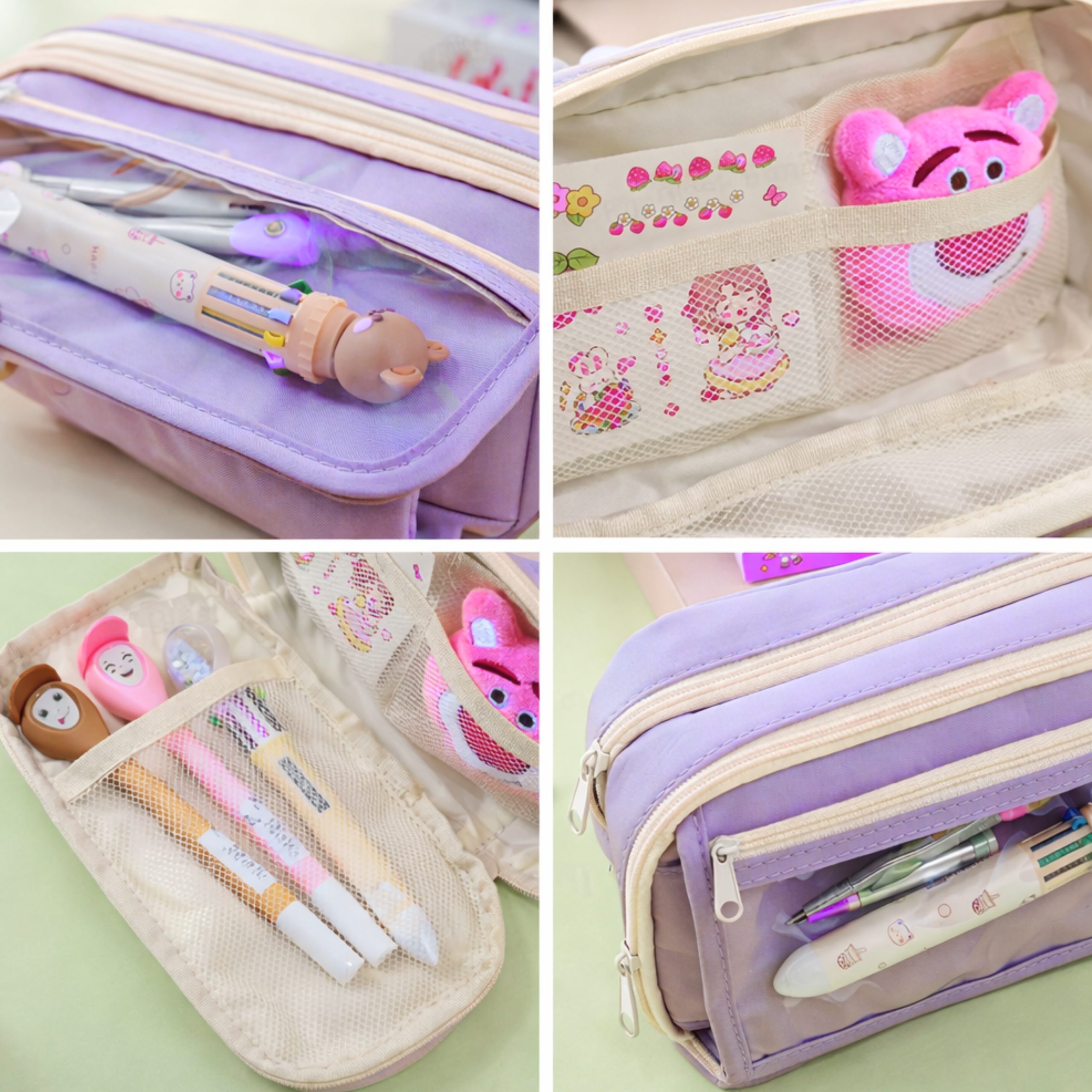 Cartuchera lisa 3 cierres rosa/lila 32x13x8 cm quantity