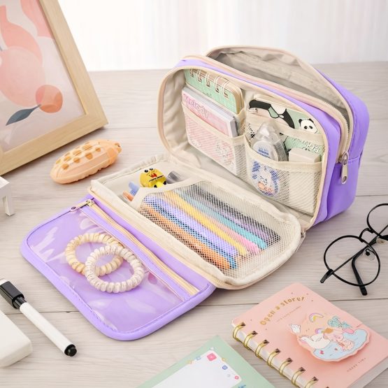 Cartuchera lisa 3 cierres rosa/lila 32x13x8 cm