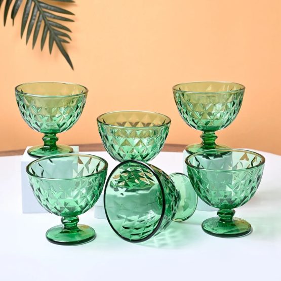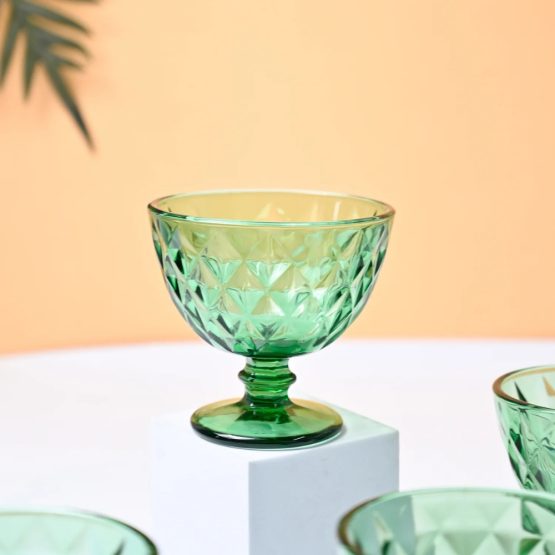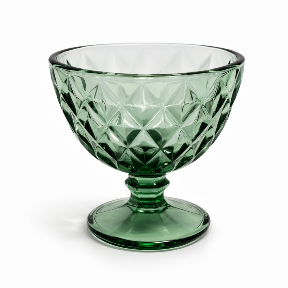 Compotera de vidrio labrada rombos verde 300ml