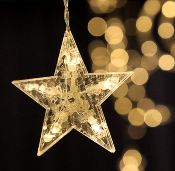 Cortina de 108 luces estrellas 2.5m luz calida 0.7m de altura