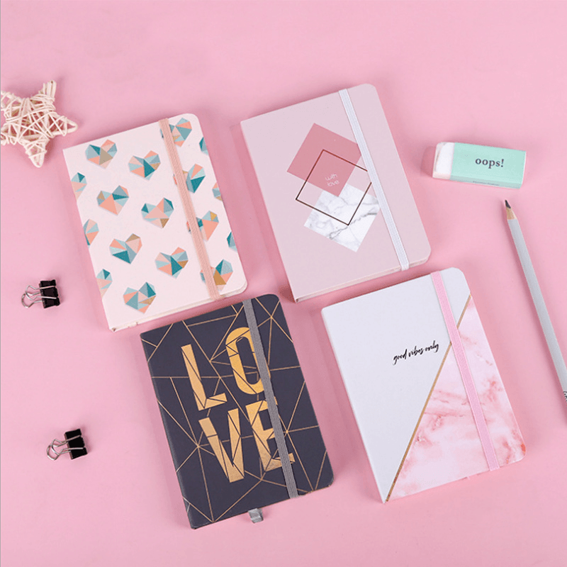 Cuaderno a5 con elastico varios diseños love/corazones