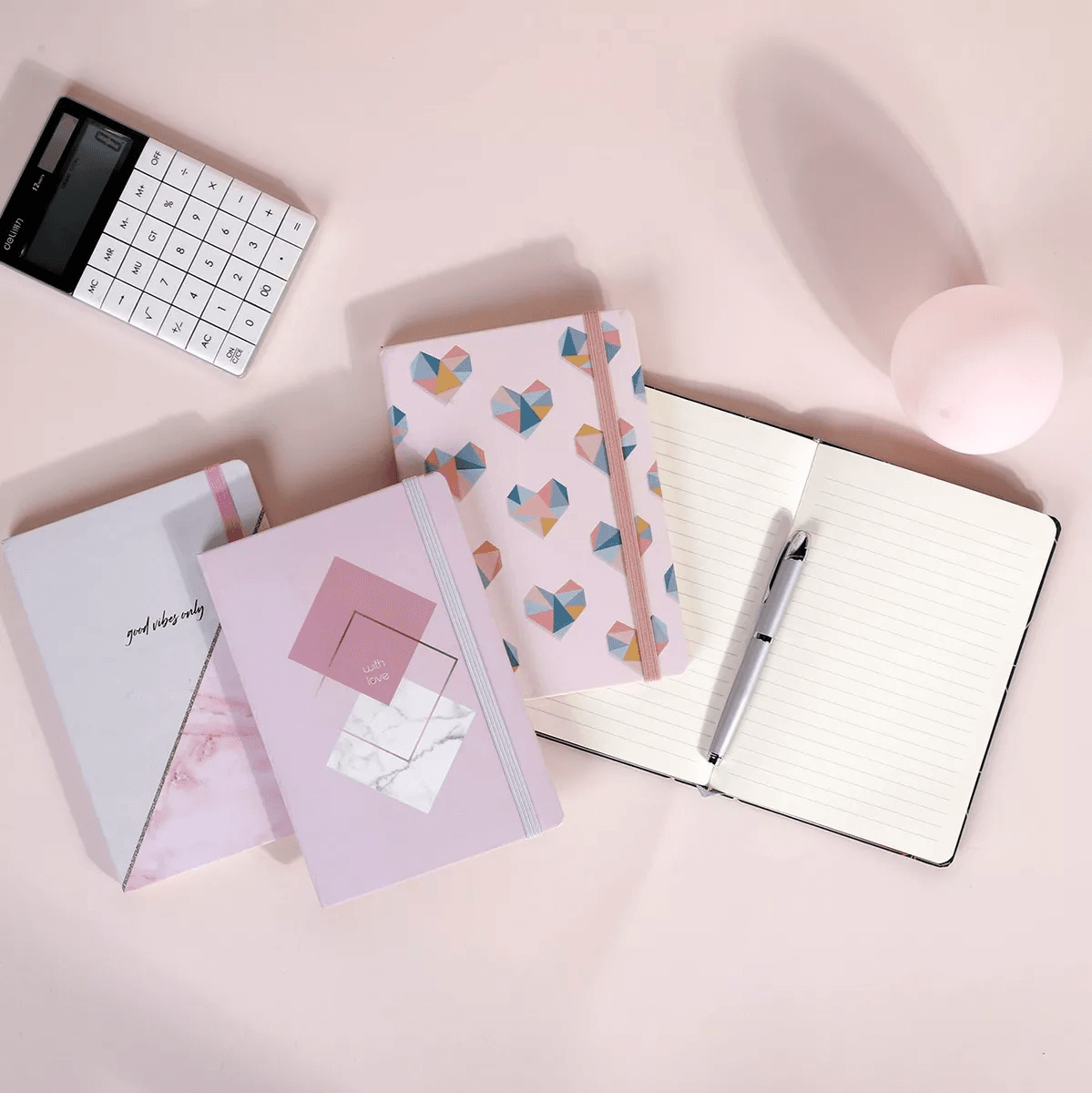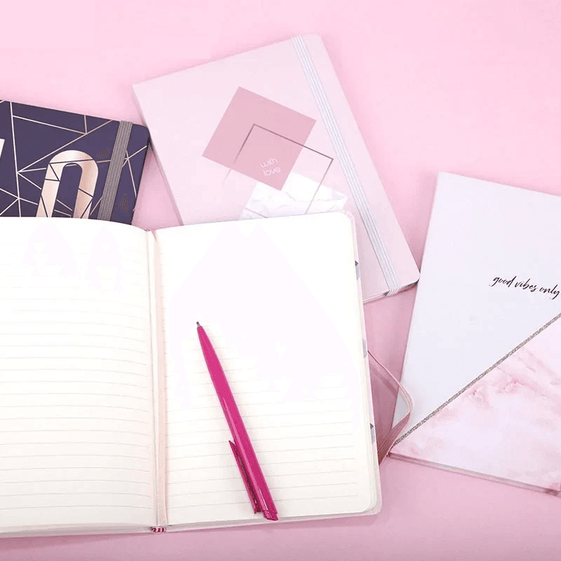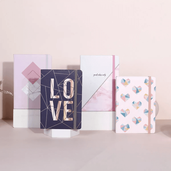 Cuaderno a5 con elastico varios diseños love/corazones quantity