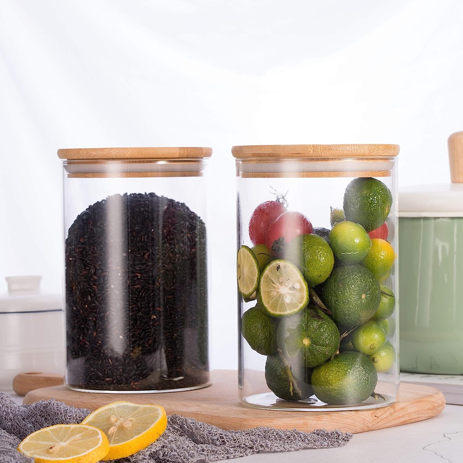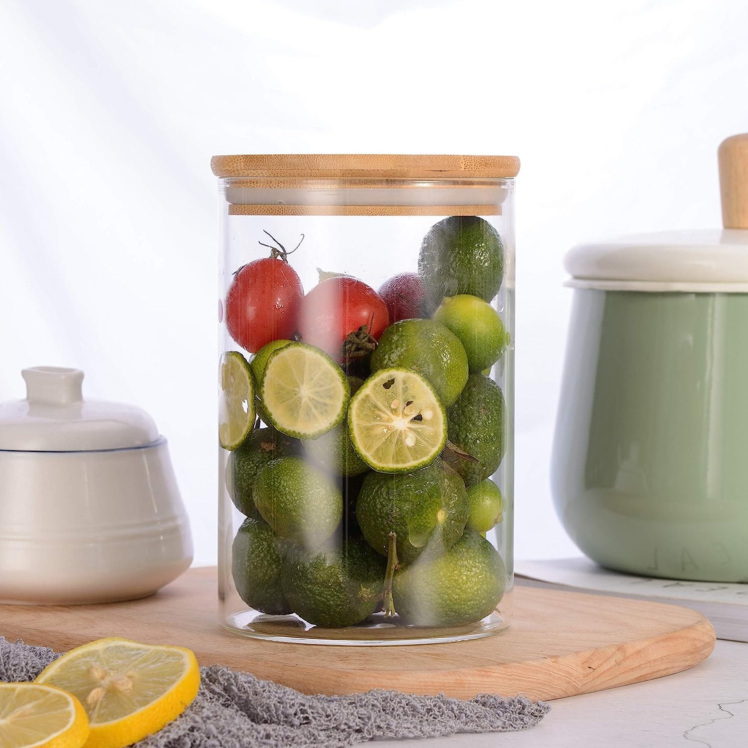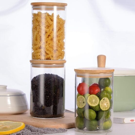 Frasco de vidrio c/ tapa de bamboo