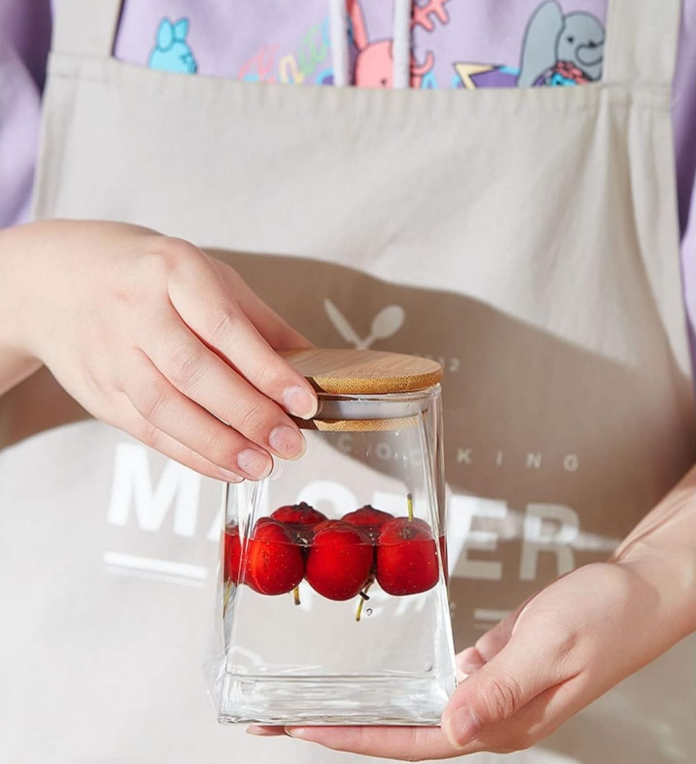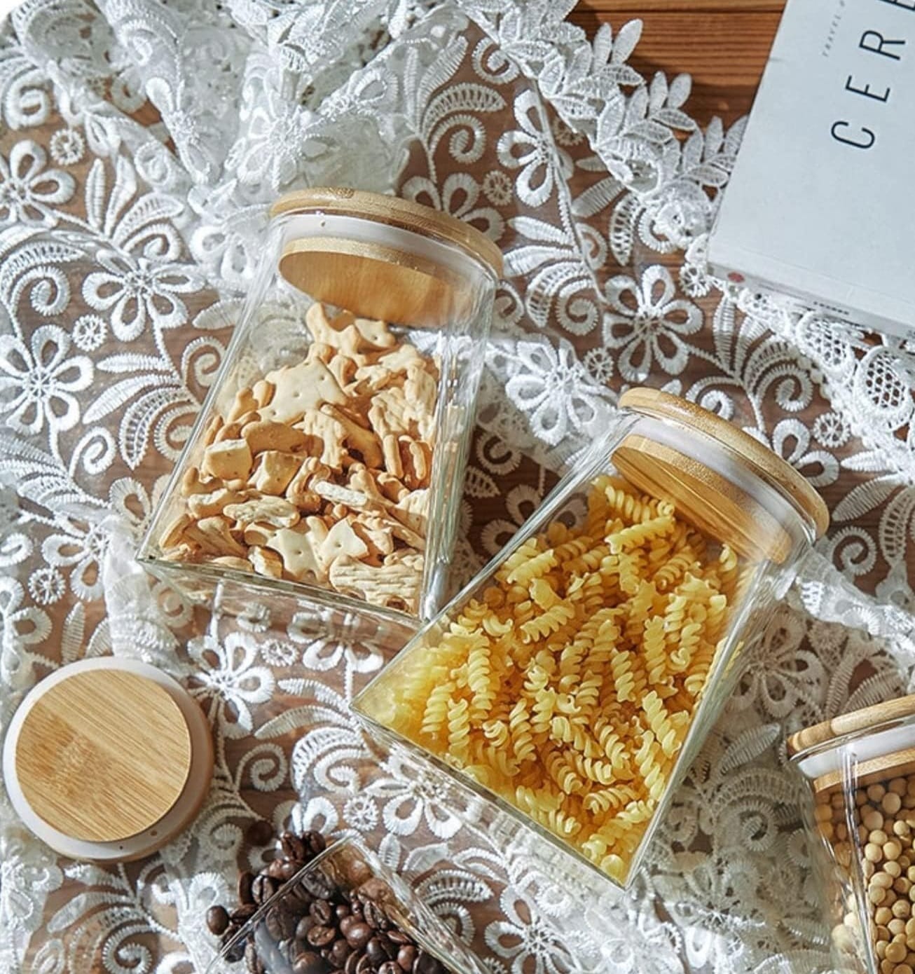 Frasco de vidrio c/tapa de bambu 950 ml base cuadrada cantidad