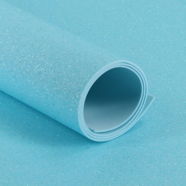 Goma eva con brillantina celeste