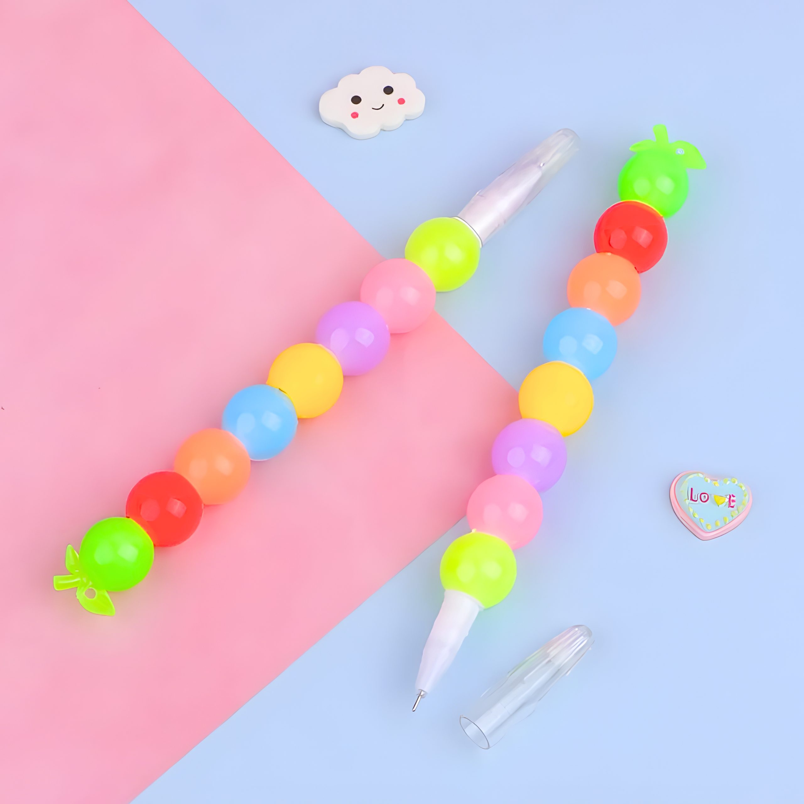 Lapicera gel aplique bolitas 16.5cm