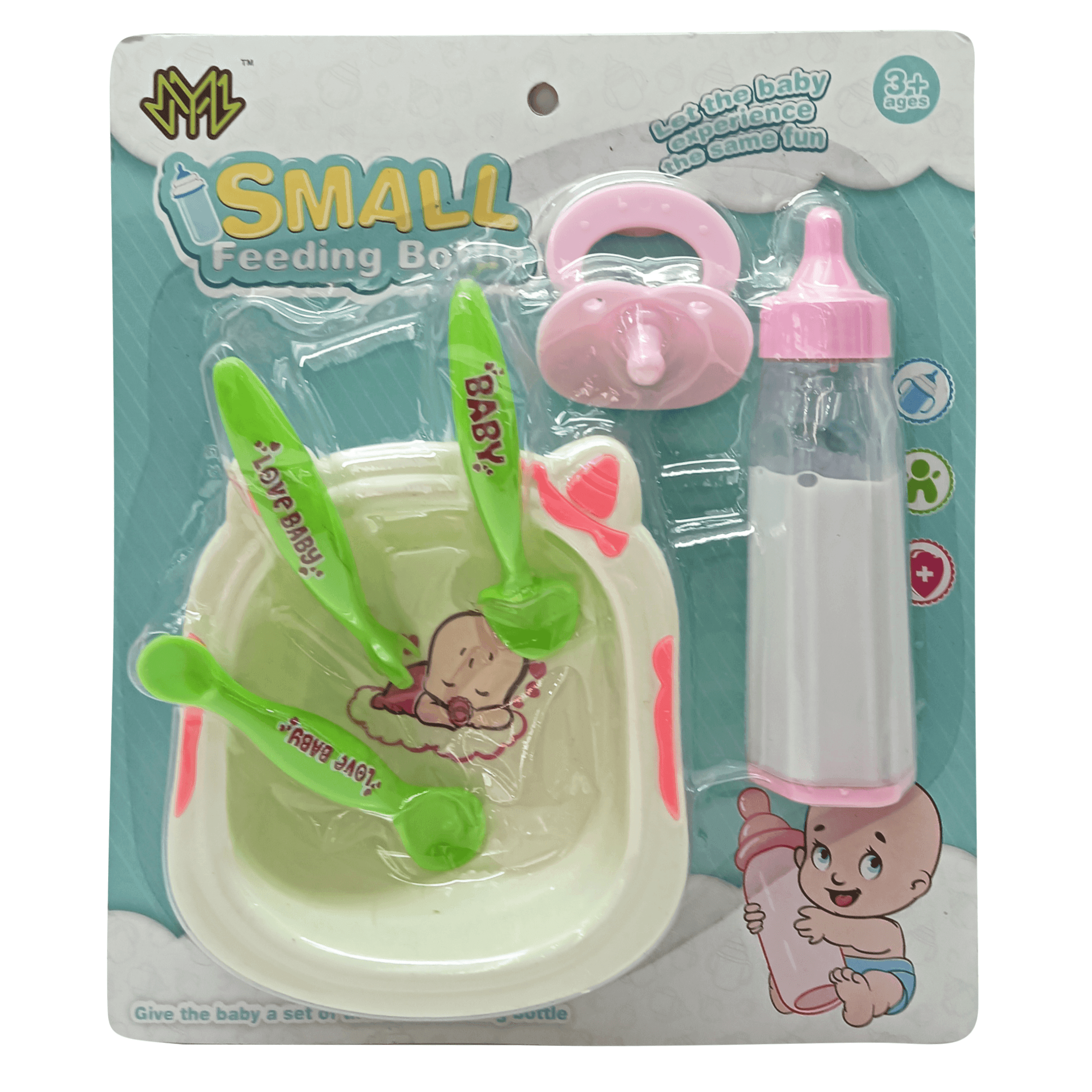 Mamadera magica con plato cubiertos y chupete