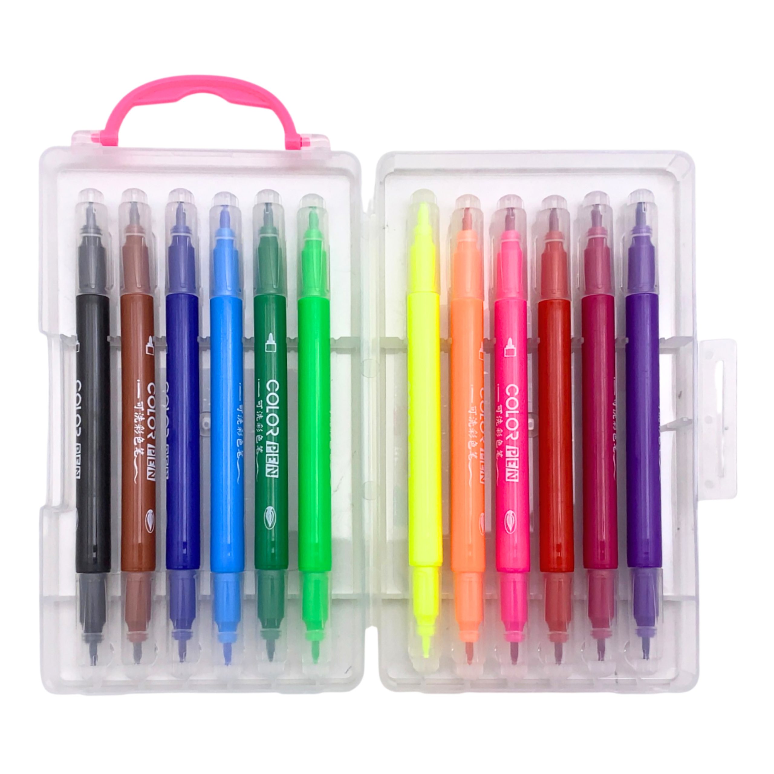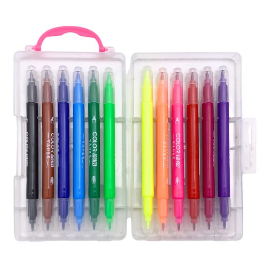 Marcadores doble punta x 12 en estuche bisel y punta fina