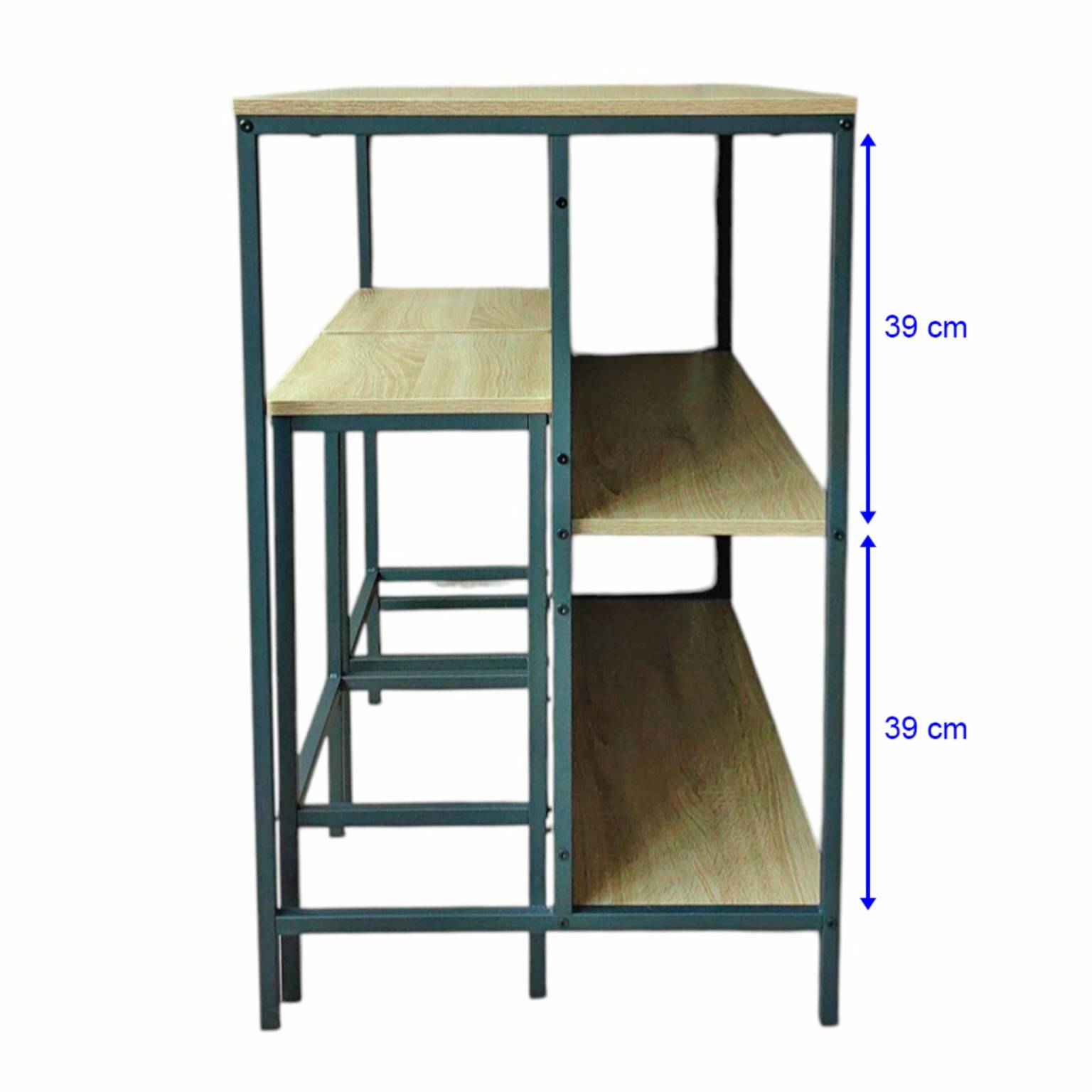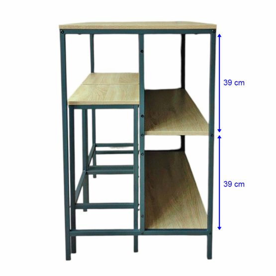 – Estructura robusta de hierro negro + superficies en MDF acabado madera
