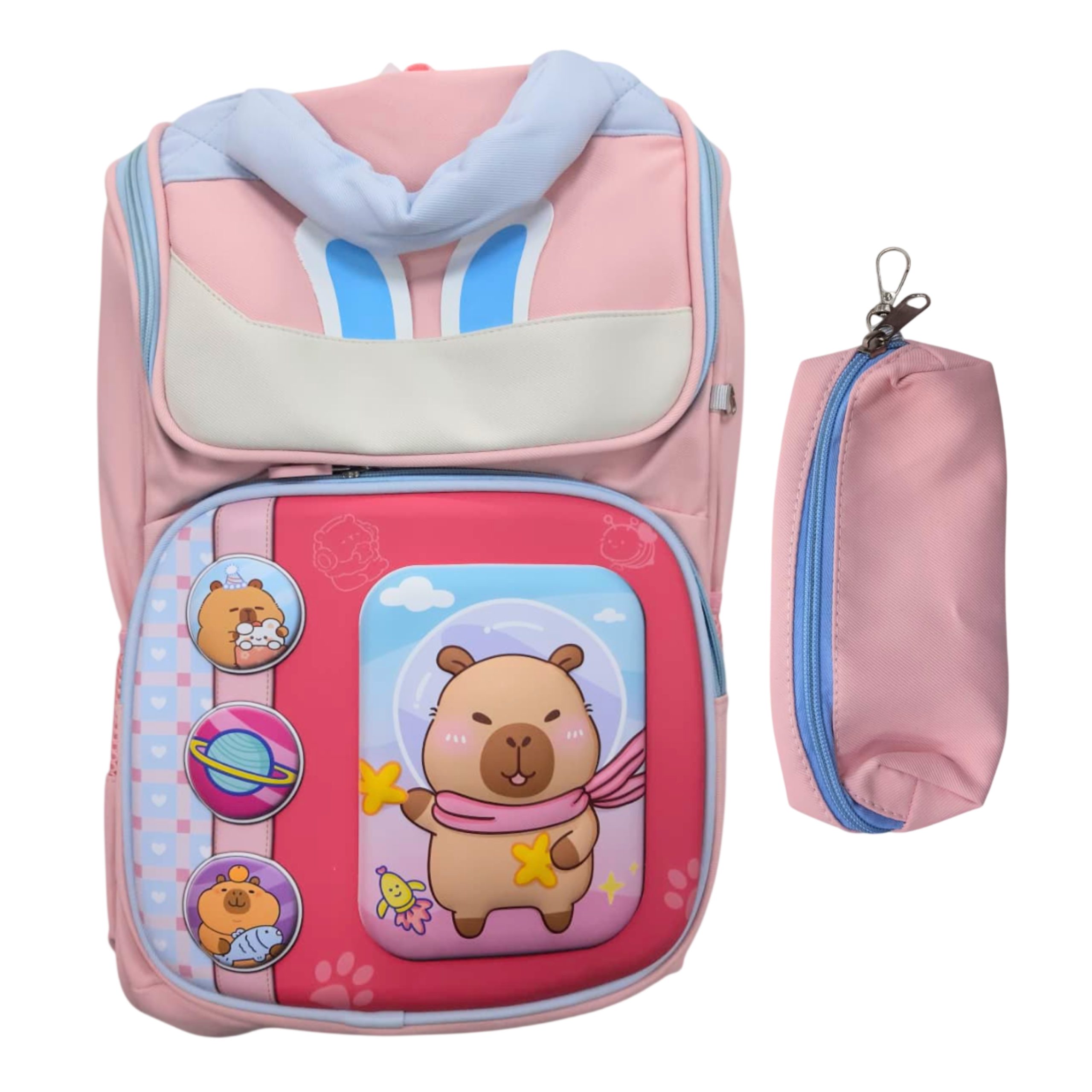 Mochila capibara con orejas y cartuchera 39×22 cm