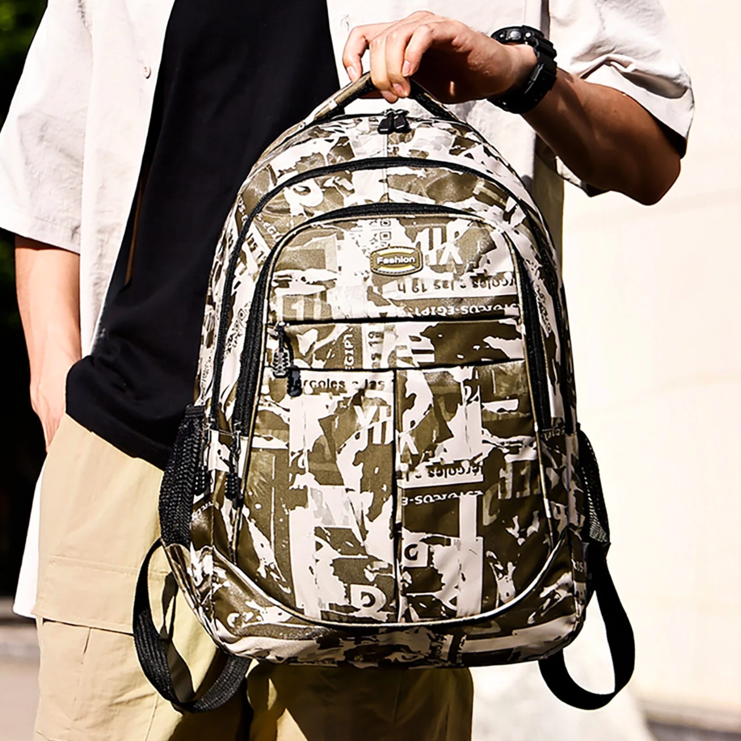 Mochila estilo camuflaje 47.5x32x13 cm