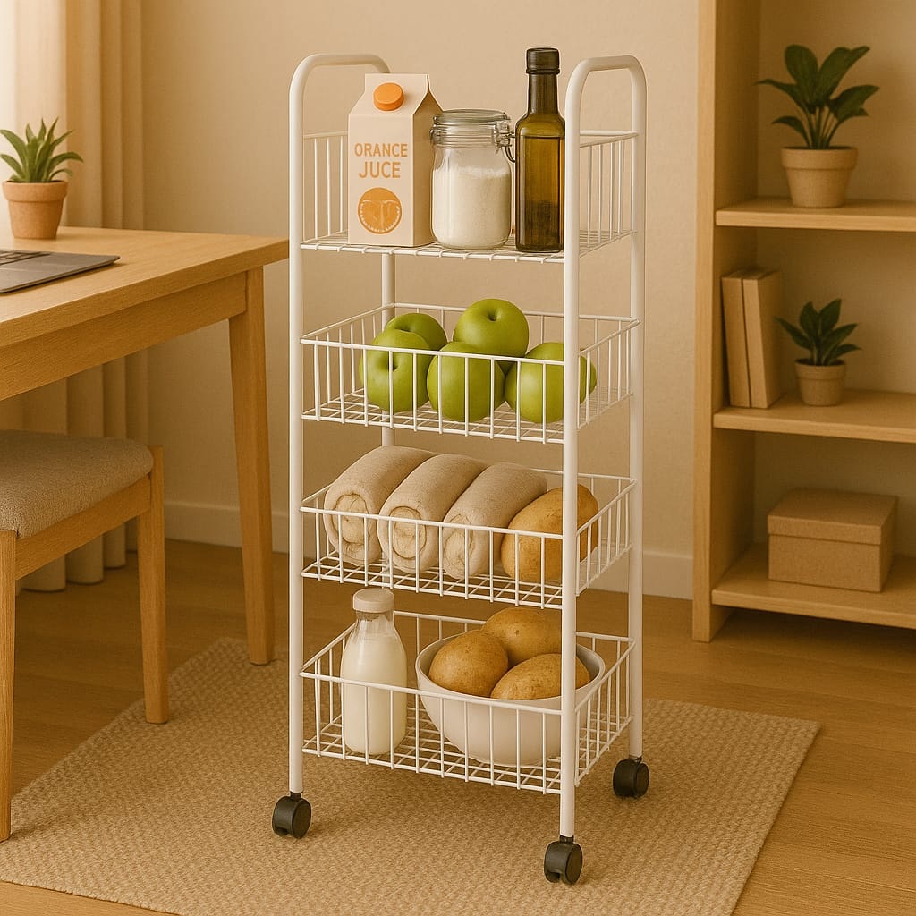 Organizador con ruedas de metal 4 estantes 36x77x23 cm
