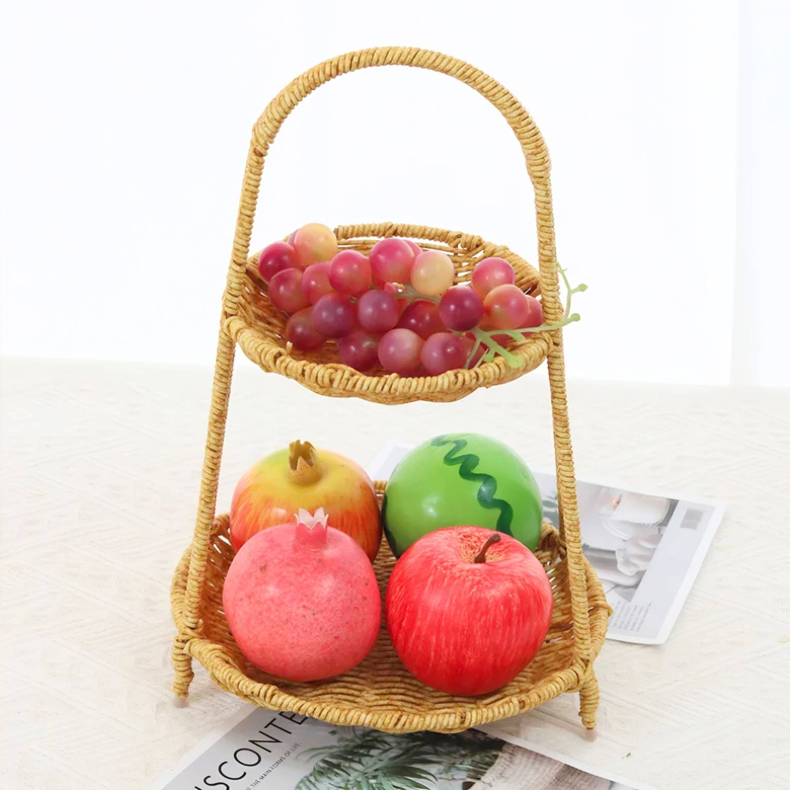 Organizador dos niveles simil ratan 22×34.5 cm