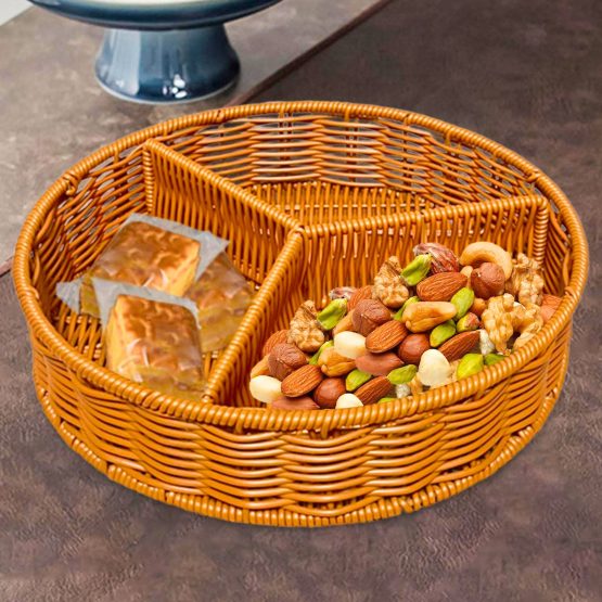 Organizador redondo 3 divisiones chico simil ratan 25×6 cm
