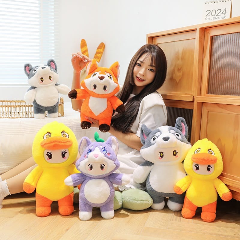 Peluche muñeco con pijama animalitos 40 cm.