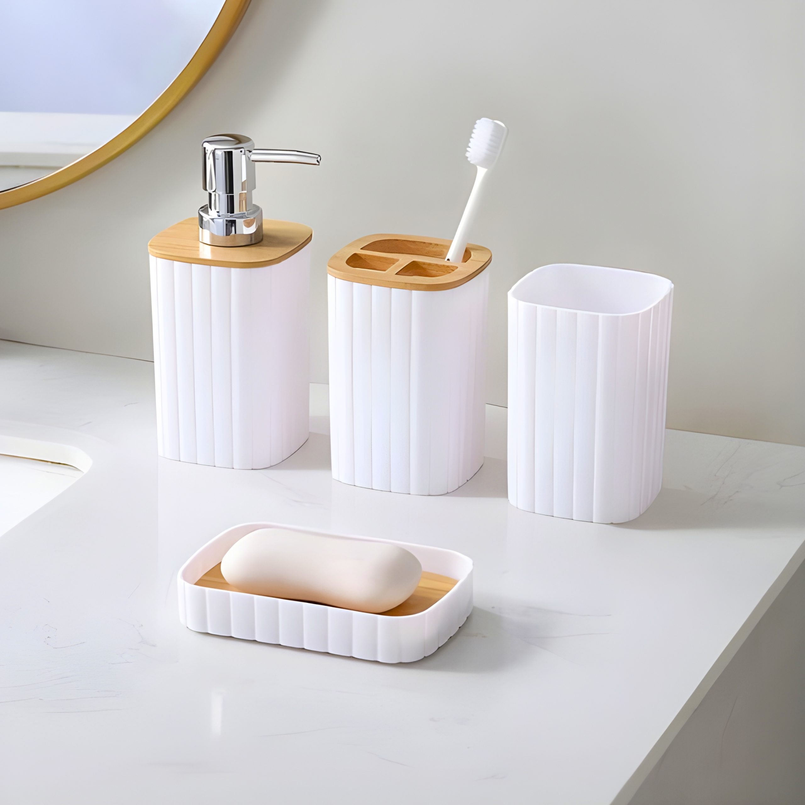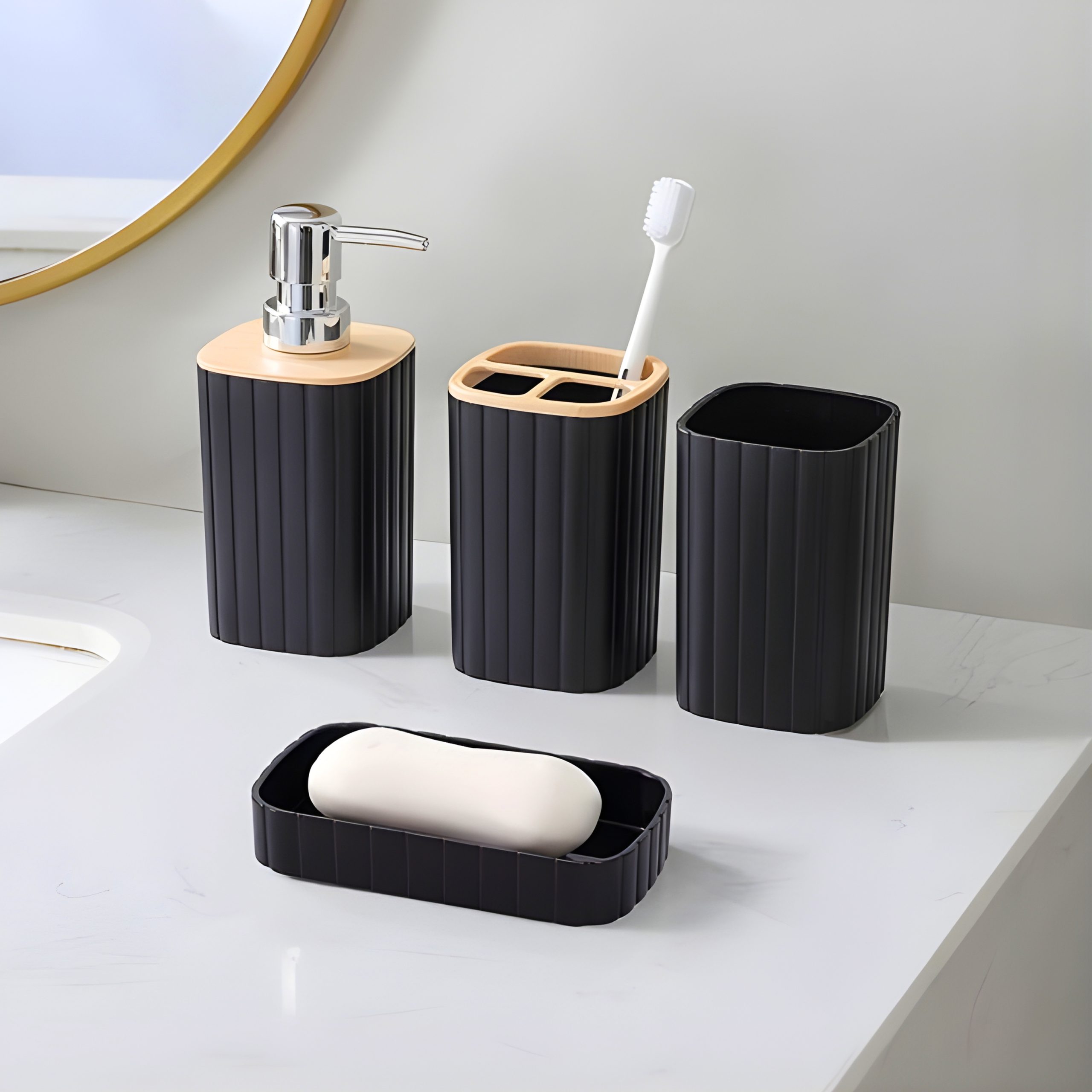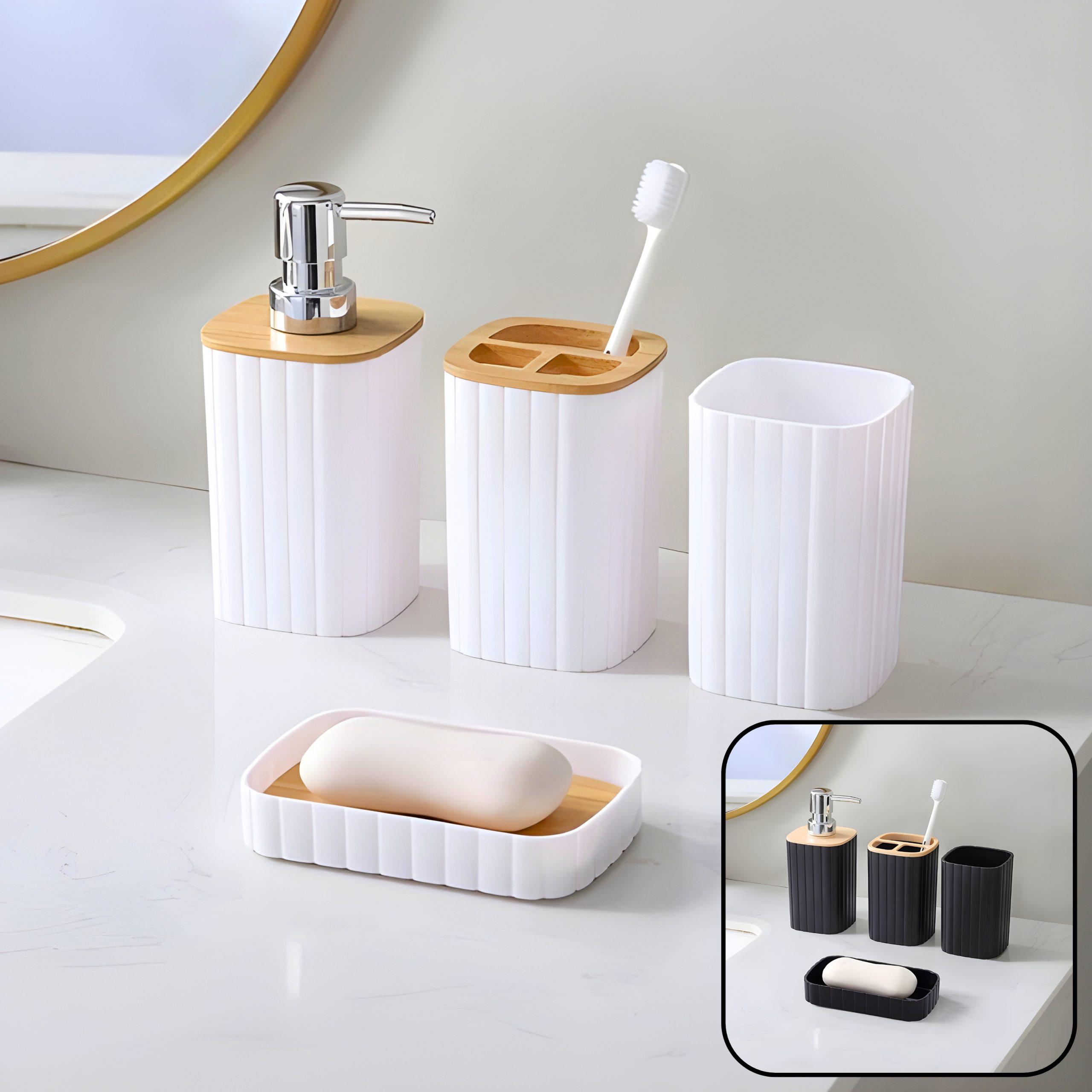 Set de baño 4 piezas blanco/negro