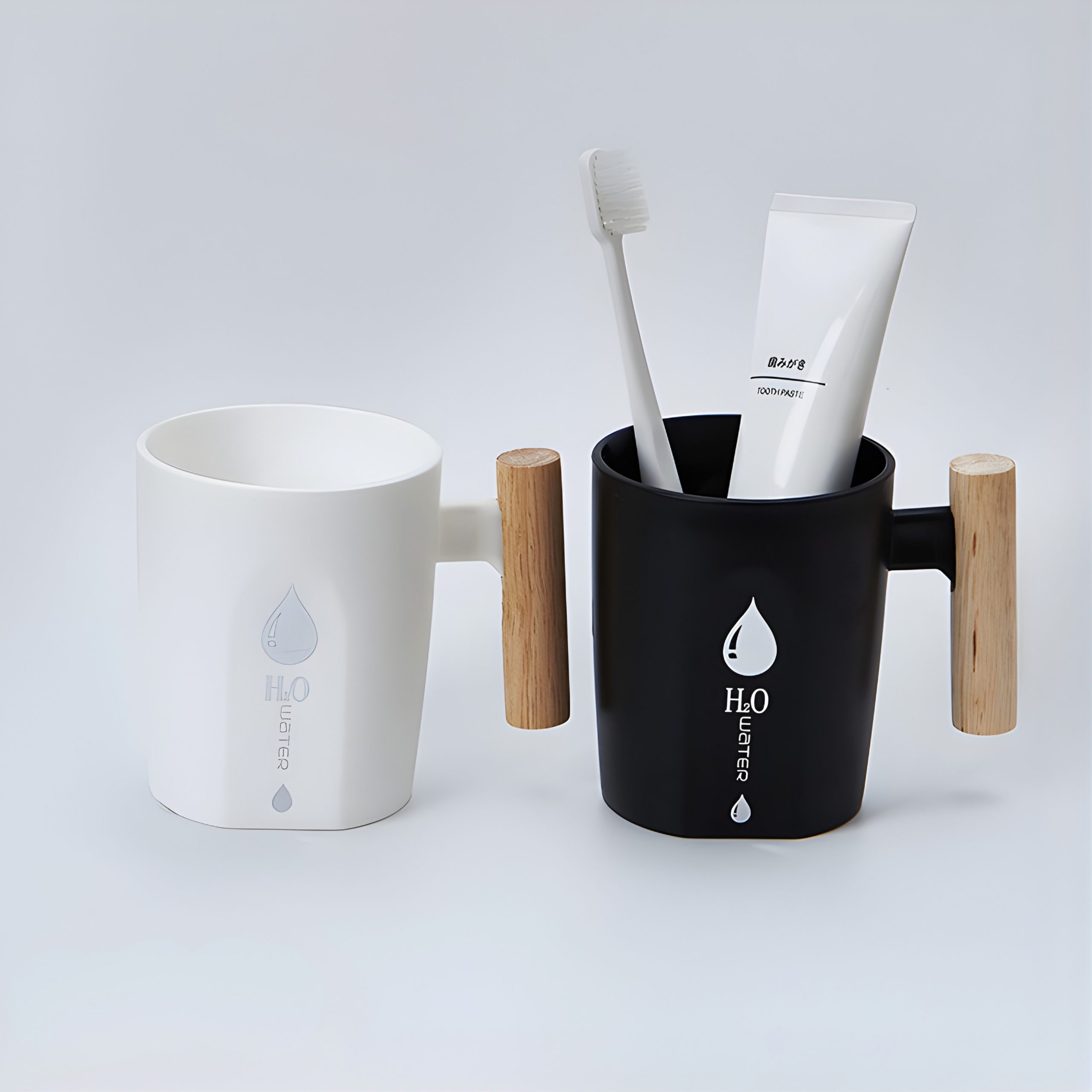 Taza de plastico mango de madera 8.5×10.5 cm