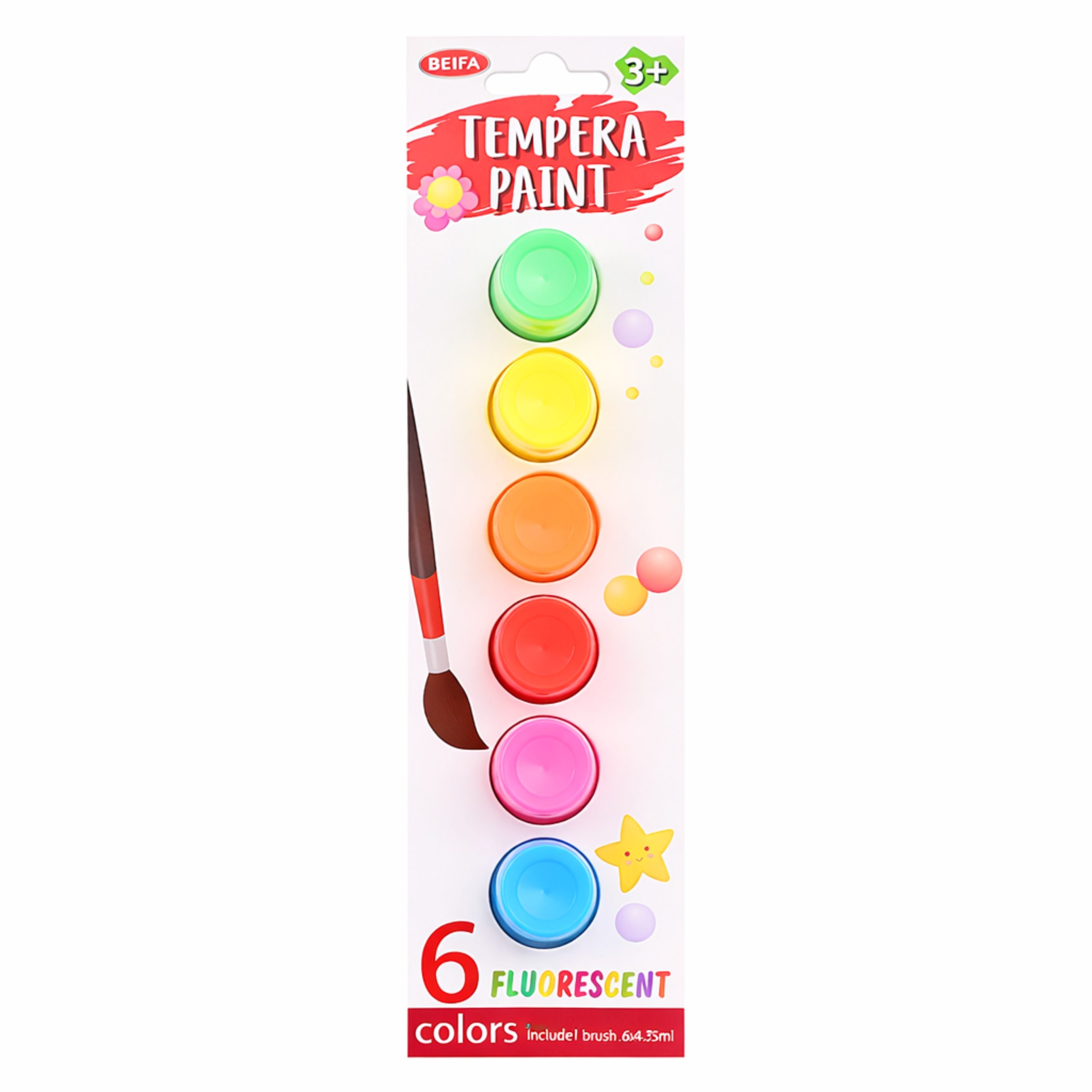 Tempera beifa 6 colores fluo y pincel quantity