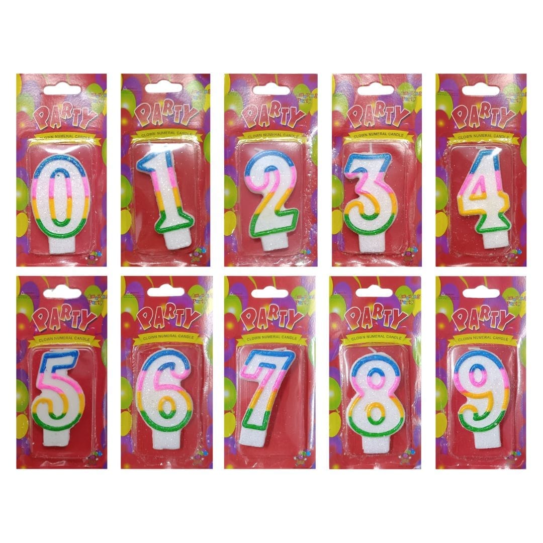 Vela numero diseños varios del 0 al 9 colores/blanco