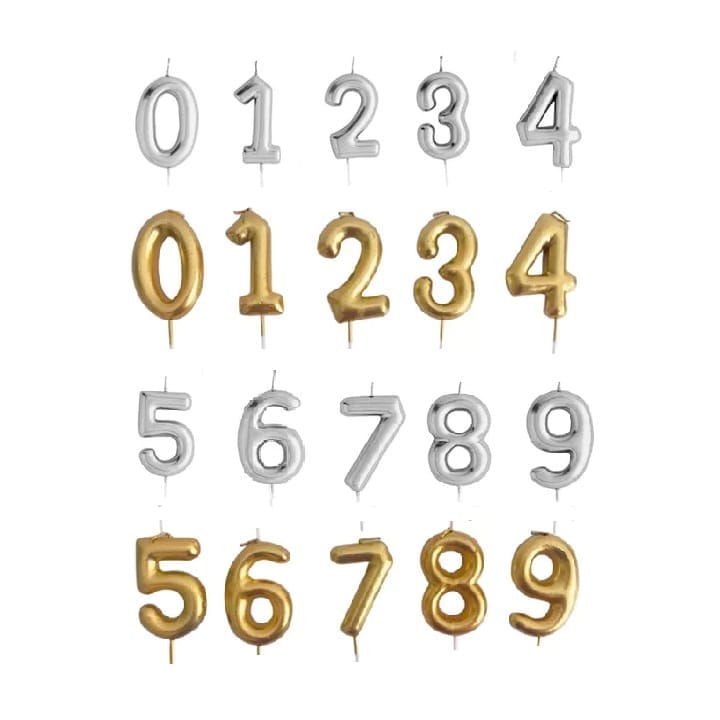 Vela numero metalizada del 0 al 9 quantity